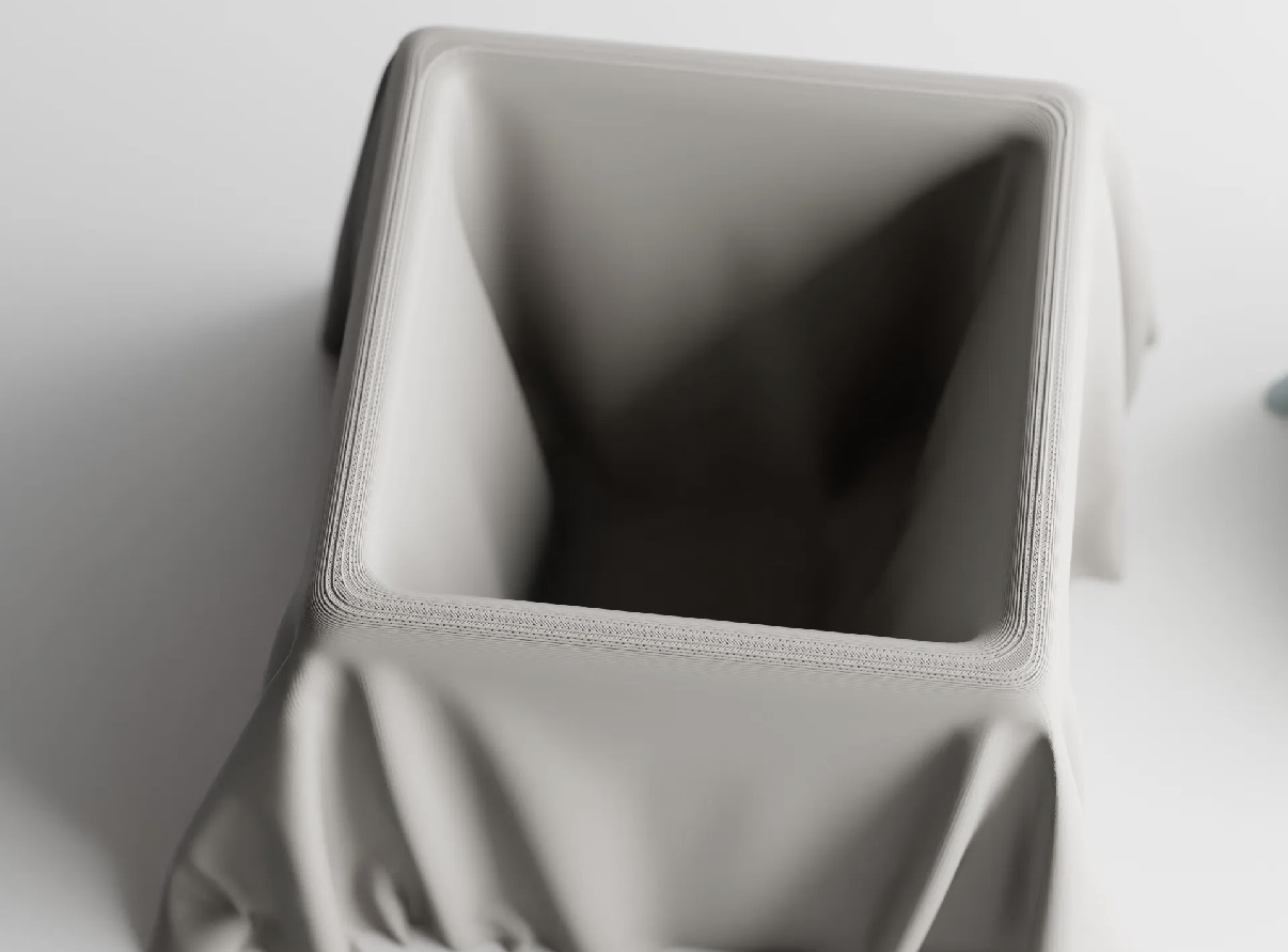 SilkCloth ist ein Pflanzgefäß, das durch seine weich fallende, textilartige Oberfläche eine besondere Ruhe und Eleganz ausstrahlt. Die Form erinnert an ein über einen Körper gelegtes Tuch und verleiht dem Objekt eine fast skulpturale Leichtigkeit. Gefertigt im 3D-Druck entsteht ein spannender Kontrast zwischen der präzisen, digitalen Herstellung und der scheinbar weichen, fließenden Anmutung.